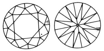 Pour cette forme de taille les inclusions sont plus facilement dissimulées grâce à sa forme parfaitement géométrique, à la position de ses facettes, à sa brillance et aux feux de cette coupe.